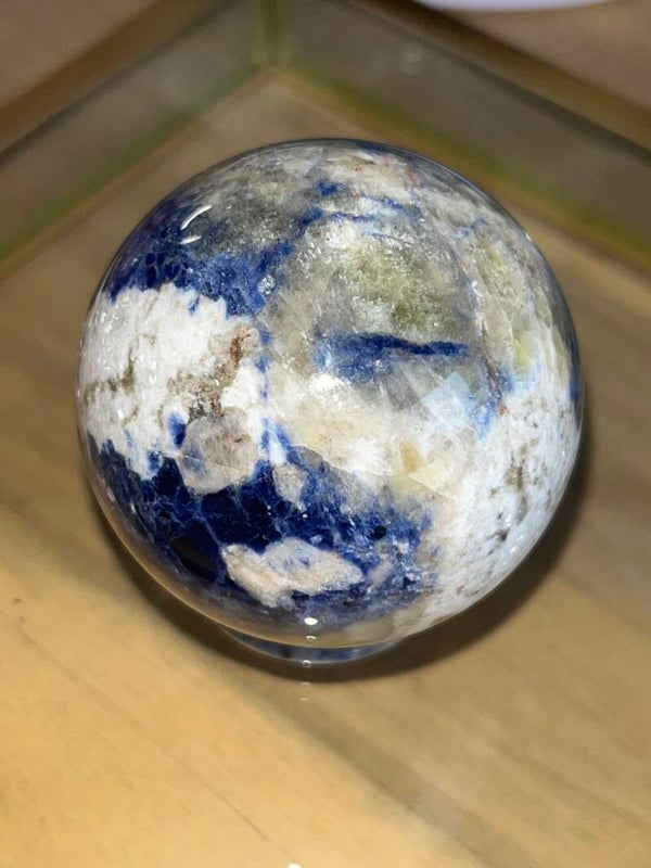 In bolvorm verspreidt sodaliet haar energie gelijkmatig, bevordert het rust en balans, en versterkt het de werking van de steen, ideaal voor meditatie en als decoratief object.