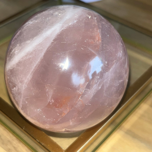 Lavendel rozenkwarts in bolvorm met starflash bevordert rust, liefde en emotionele genezing. Het is verbonden met het hartchakra en derde oogchakra, ideaal voor meditatie en harmonie.