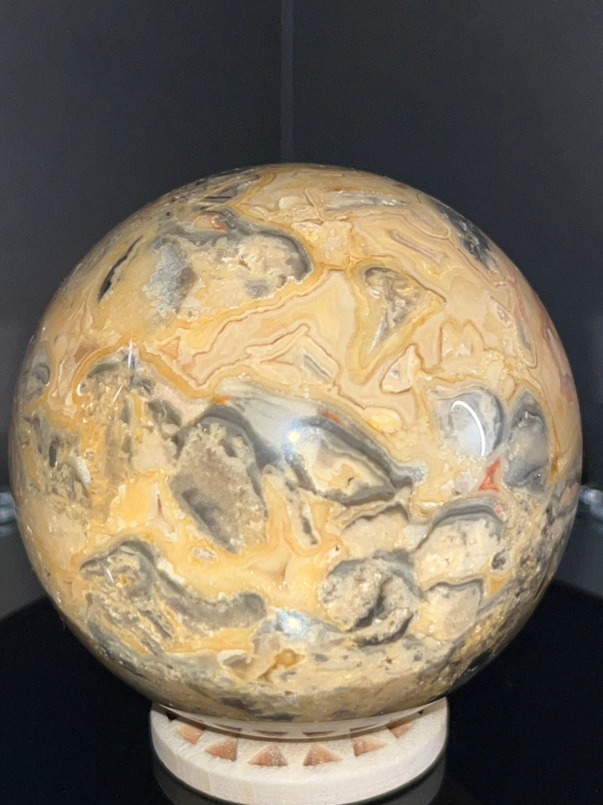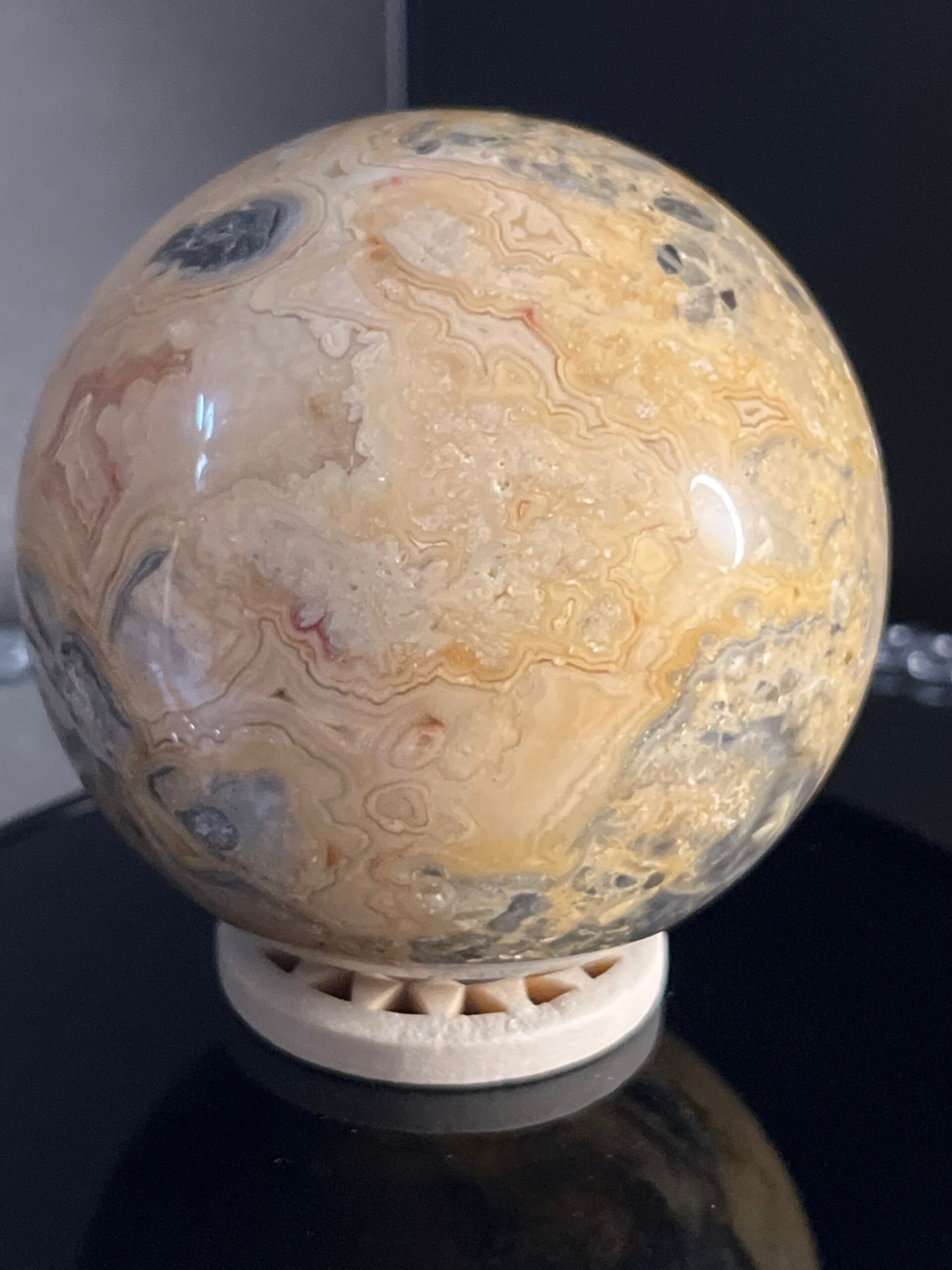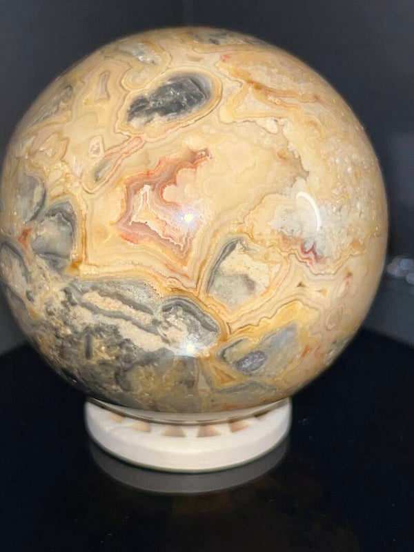 - Yellow Lace Agate bevordert emotionele genezing, verlicht angst en versterkt zelfvertrouwen. Het werkt aardend en balancerend, helpt bij het herstellen van innerlijke rust en bevordert de creativiteit. Het stimuleert het zonnevlechtchakra voor persoonlijke kracht en helpt bij het manifesteren van doelen. Het ondersteunt ook het sacraalchakra voor emotionele expressie en creativiteit.