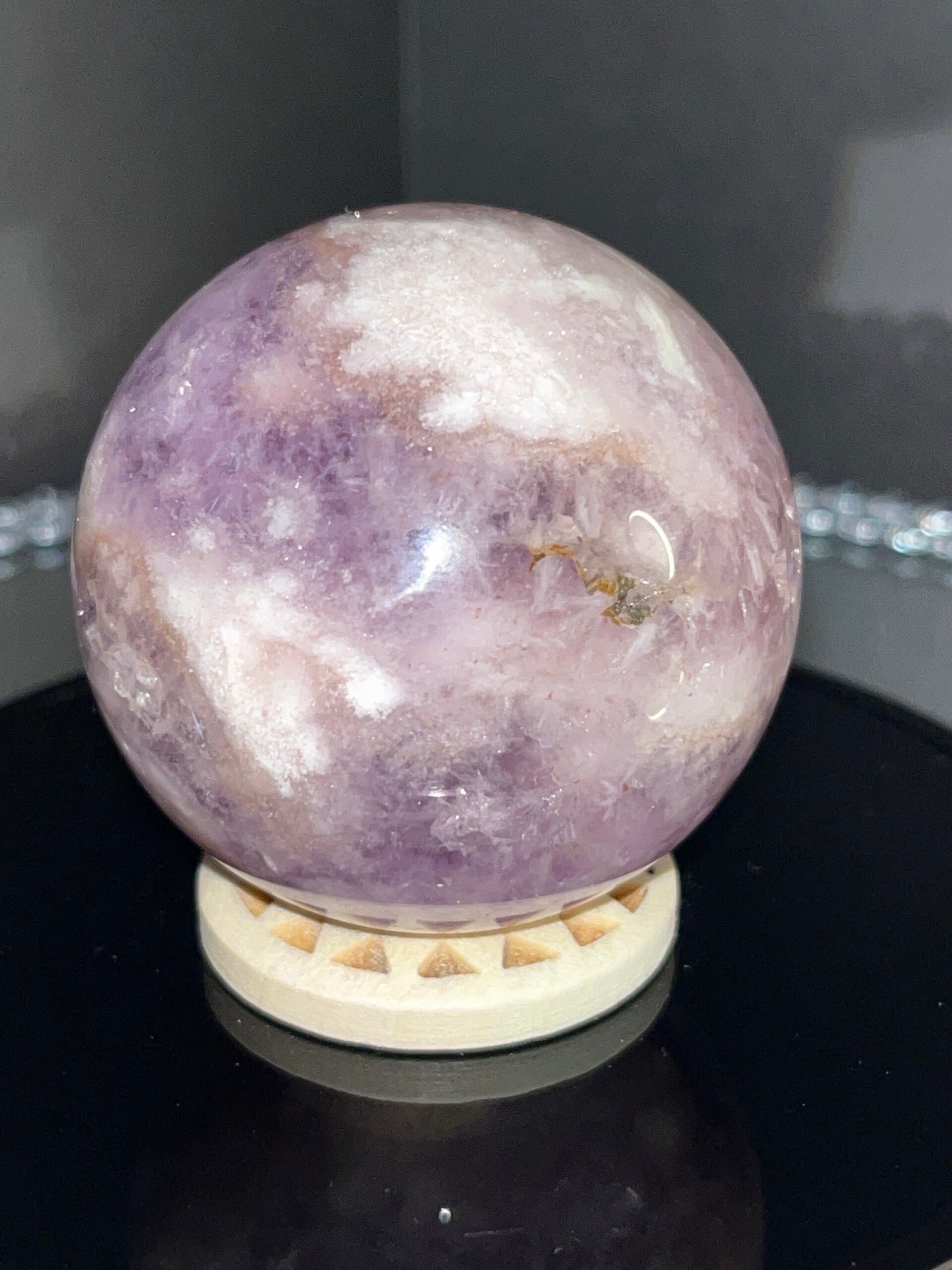 - Roze amethist bevordert emotionele genezing, innerlijke rust en liefdevolle energie, vooral via het hartchakra. De paarse tint versterkt spirituele verbinding en bevordert intuïtie. Gele insluitsels kunnen de energie versterken, gericht op zelfvertrouwen, positieve transformatie en verlichting. Het is een steen die helpt bij het balanceren van emoties en het bevorderen van spirituele groei.