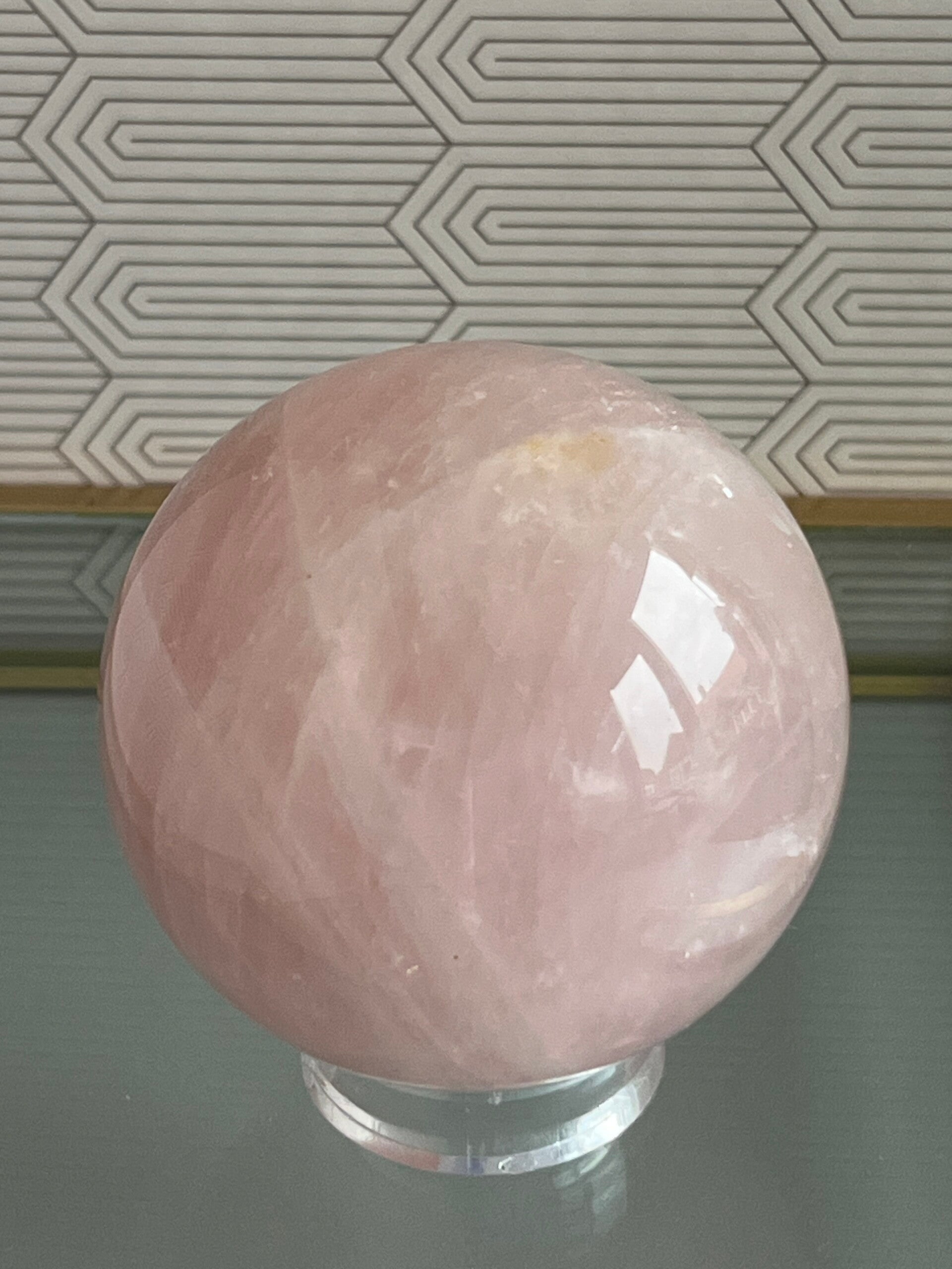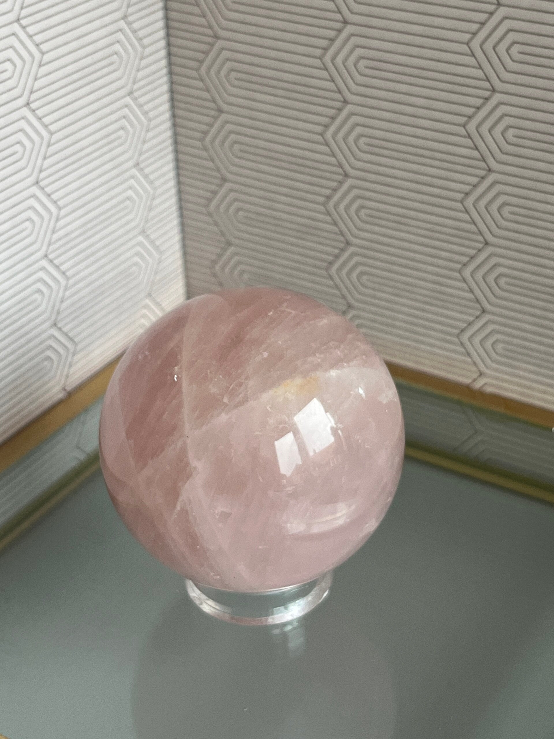 Een pure bron van liefde, zachtheid en heling. Deze Rozenkwarts bol opent het hartchakra en helpt bij het loslaten van emotionele spanningen. Ze brengt rust, harmonie en nodigt uit tot zelfliefde en compassie. Een prachtige toevoeging aan je meditatieplek, altaar of als liefdevolle energie in je huis.