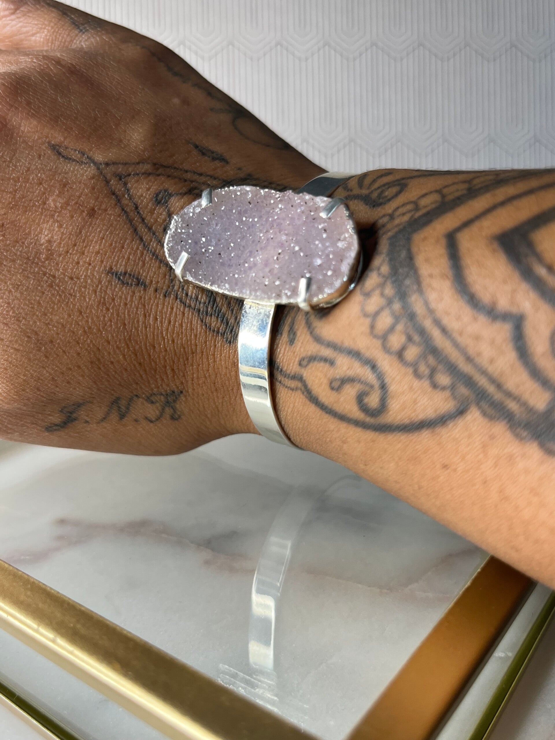 Voel de rust en kracht van de natuur met deze prachtige druzy regenboog amethist armband. Met haar rauwe, sprankelende oppervlak en diepe energetische werking is deze armband niet alleen een stijlvol statement, maar ook een bron van balans en bescherming.