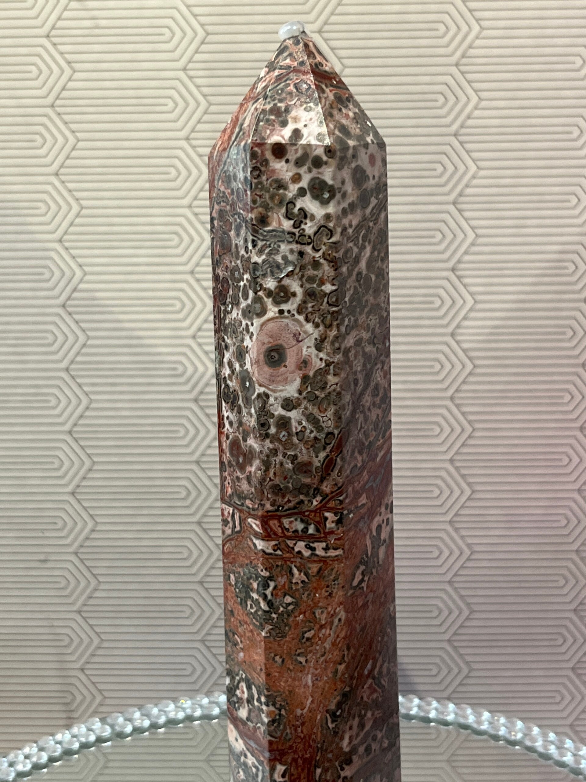 Luipaard jaspis wordt vaak gezien als een steen van bescherming, verbinding en innerlijke kracht.